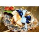 Vassoio smerlato in Ceramica di Deruta, lavorata e dipinta a mano con disegno inciso. Confezionata con 350 gr di Cioccolatini Assortiti.
